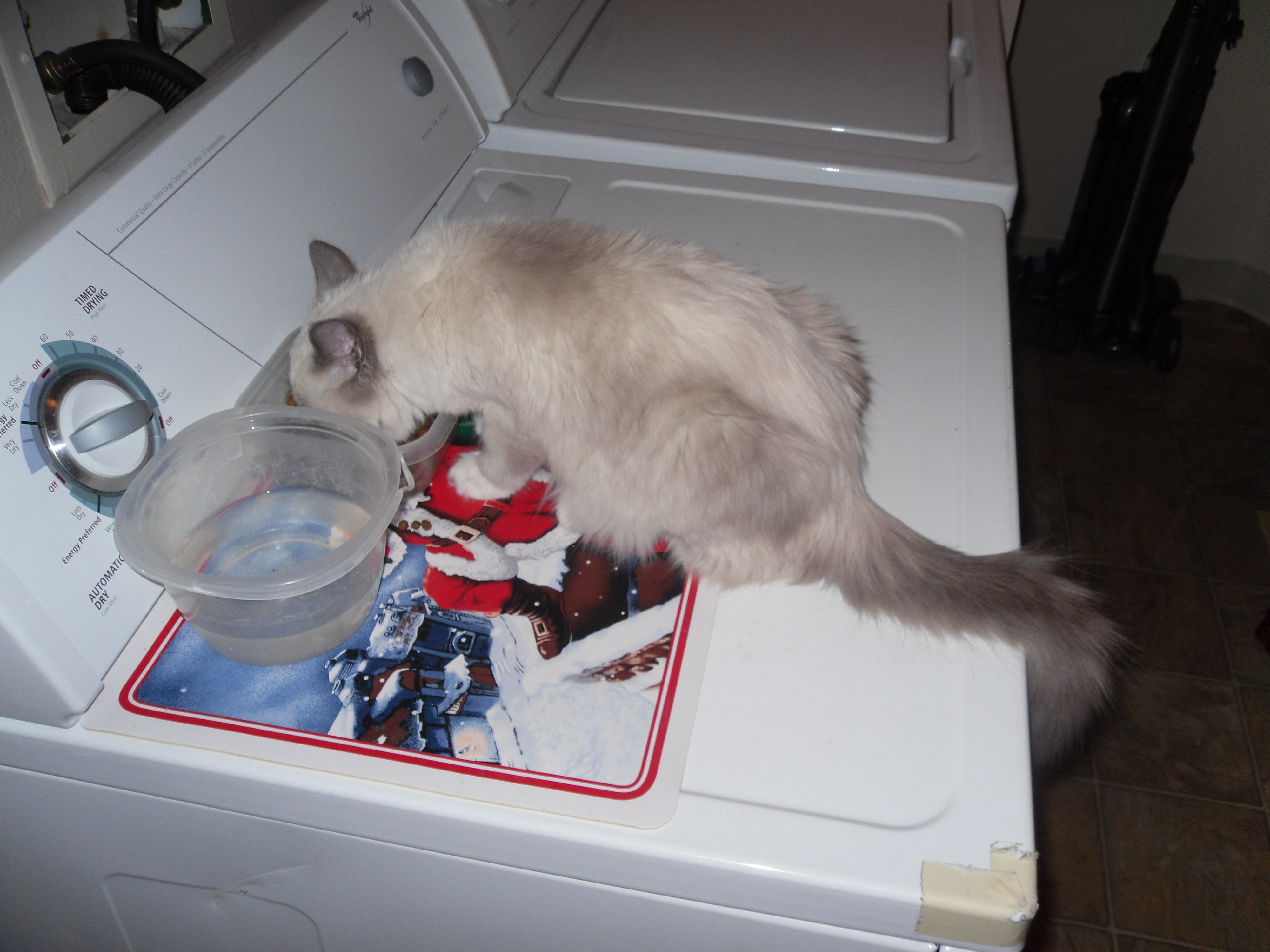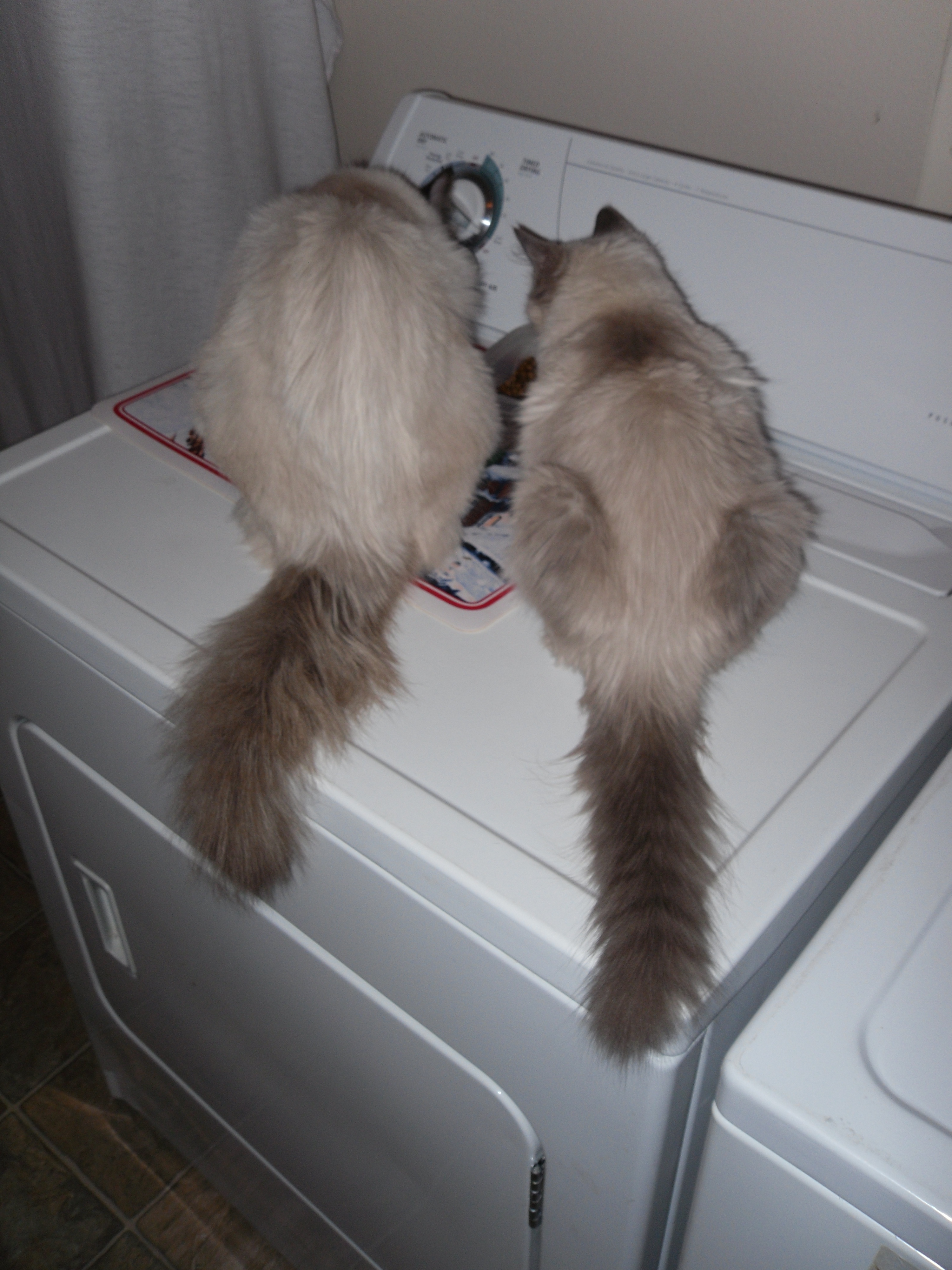 Breakfast time for Poe and Lotus. Notice the ghost lynx markings on Lotus' tail.