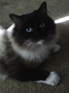 Snuggling with Sophia.  Sometimes his expressions look so human to me.