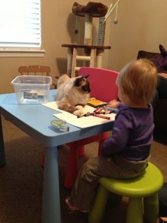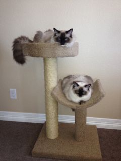 "We picked up our first Temple Doll, Elspeth, in late August, 2012. She was 12 weeks old, healthy, beautiful, loving and spirited. Elspeth was comfortable and friendly with everyone; neighbors, friends, family, most importantly our 1 year old granddaughter. We quickly decided we didn't just want one of these loving, playful and beautiful cats, so we contacted Janet and to our good fortune Elspeth's litter mate, Merlin, joined us. He has all of the qualities of his sister and our granddaughter adores him as well. They have grown into beautiful cats and are wonderful companions who love to be in our company. Anyone who brings one of Janet's kittens to their "forever home" will be lucky indeed!"
