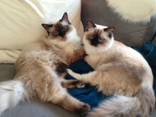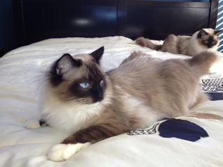 Elspeth -- a Colorpoint Girl; and Merlin -- a Seal-Mitted Boy. Brother and sister... out of our wonderful Lotus and Poe.