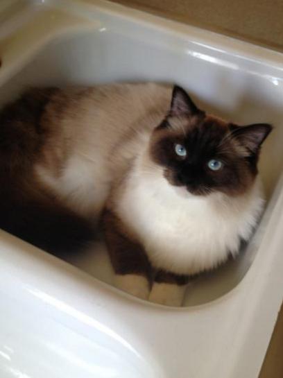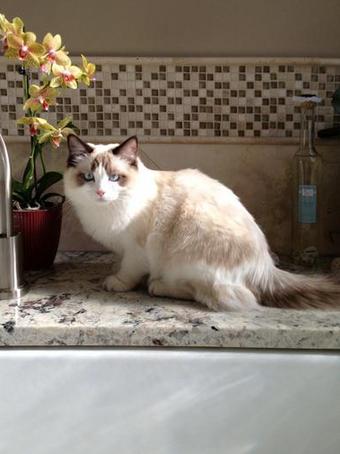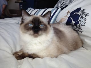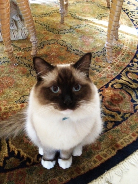 "I was fortunate enough to come across 'Crosby' a seal mitted kitten with the cutest little face on the TempleDolls website. I immediately contacted Janet and was impressed with her knowledge and passion for the breed. Having not owned a kitten in 10+ years, she was able to answer any questions that I had and offered great advice and tips on everything from food, grooming, litter box training to vaccines. She always keeps in touch and lets you know that she is there to help. Crosby is now almost 6 months old and is the sweetest most loving boy. He follows us everywhere, loves to cuddle and is very family friendly (he even won my dog loving husband over!). I would definitely use TempleDolls again as Janet has the most perfect little kittens!"