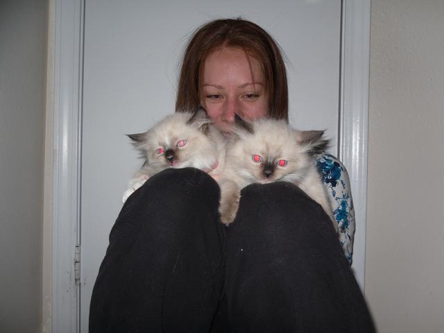 I'm sitting here in the laundry room and pantry, of my old two bedroom apartment, with the very first TempleDolls kittens (Milo and Oliver).