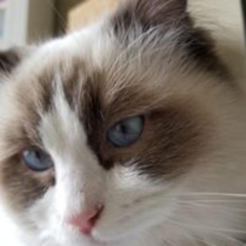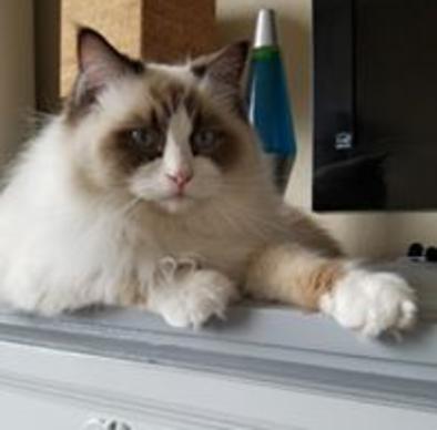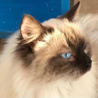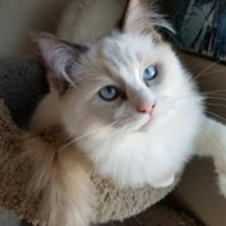 We have raised this beautiful cloud of a ragdoll since he was a kitten. His coat is bunny soft, and he has a stunning bone structure. Sky is loving and full of purrsonality. He keeps us laughing. He has been a wonderful addition to our program. He brought genetic chocolate to our pedigree. What an absolute gem of a big sweet boy.
